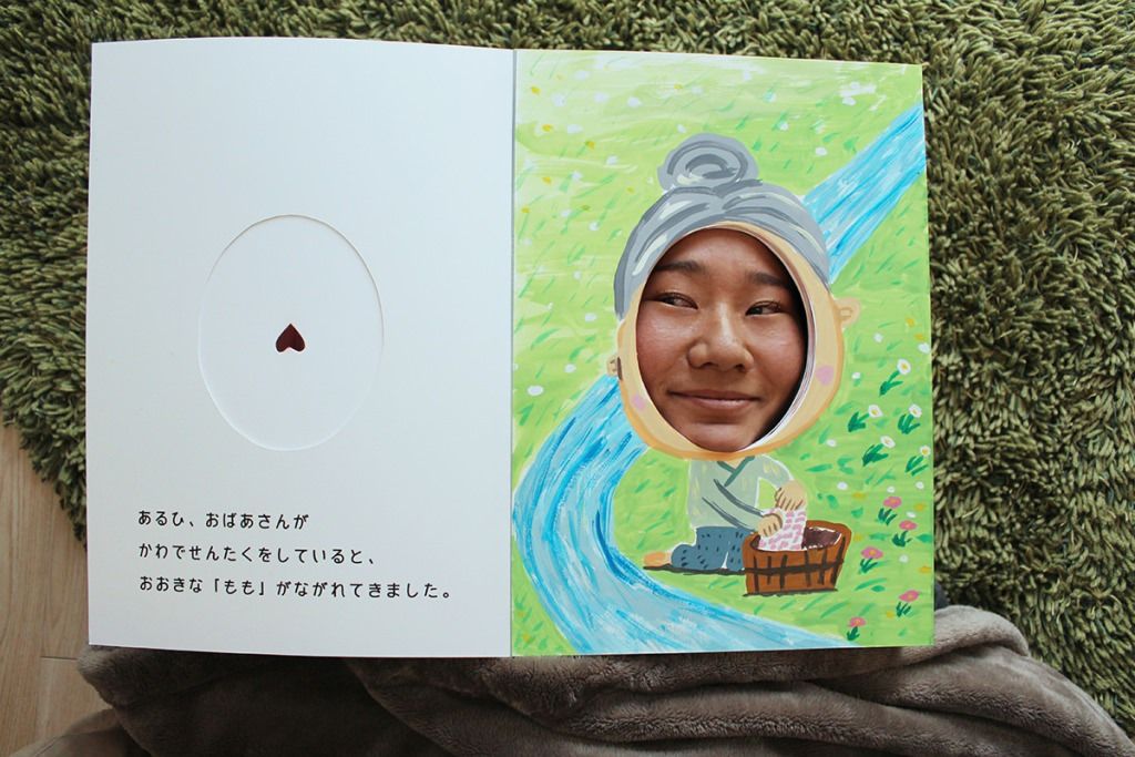 おばあさんが川で洗濯をしていると、おおきな桃が流れてきました。